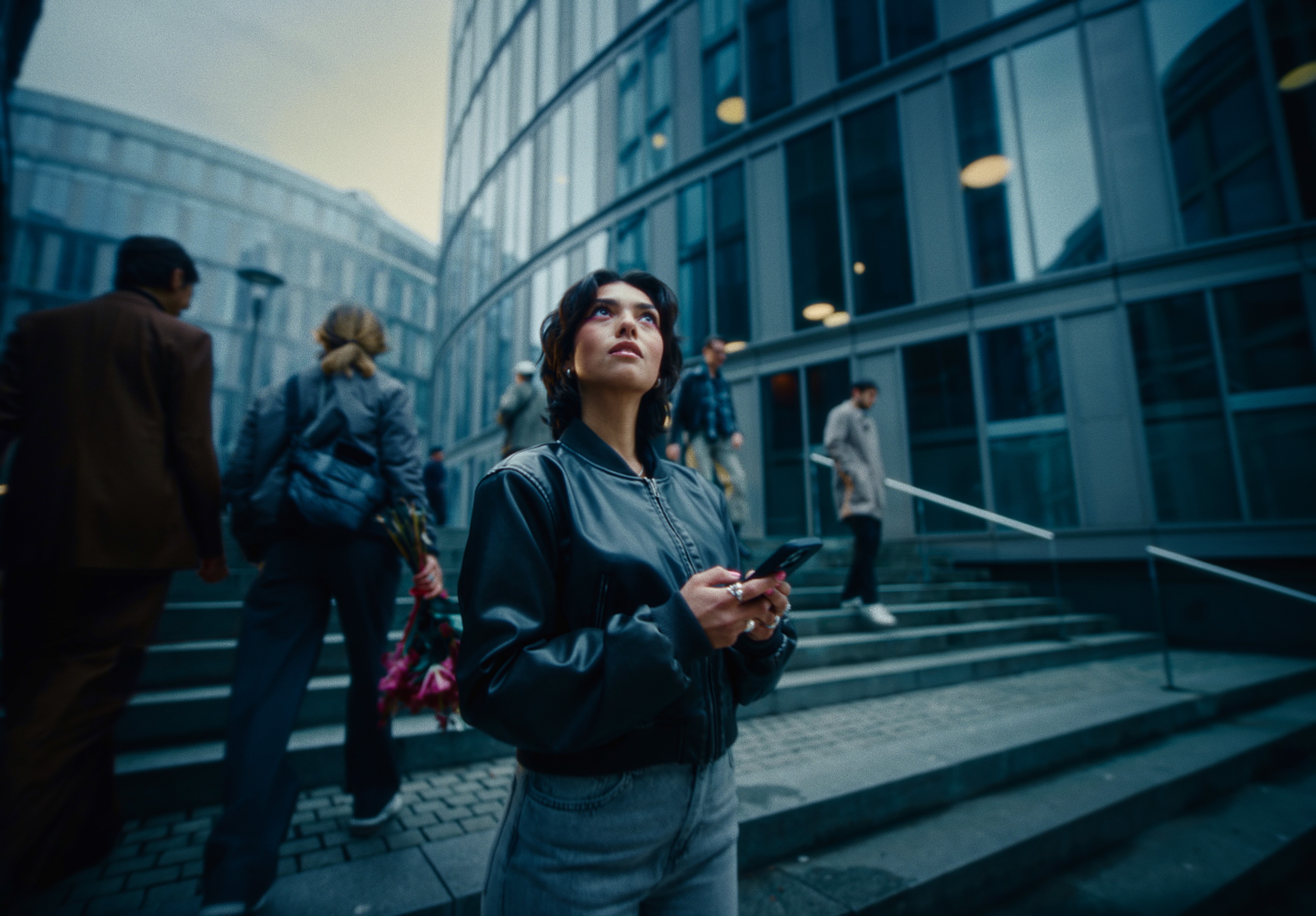 In a modern high-rise setting, gum-chewing Riley is engrossed in her smartphone, until a voiceover unexpectedly reveals that all chewing gums contain plastic – and her carefree world literally bursts apart.